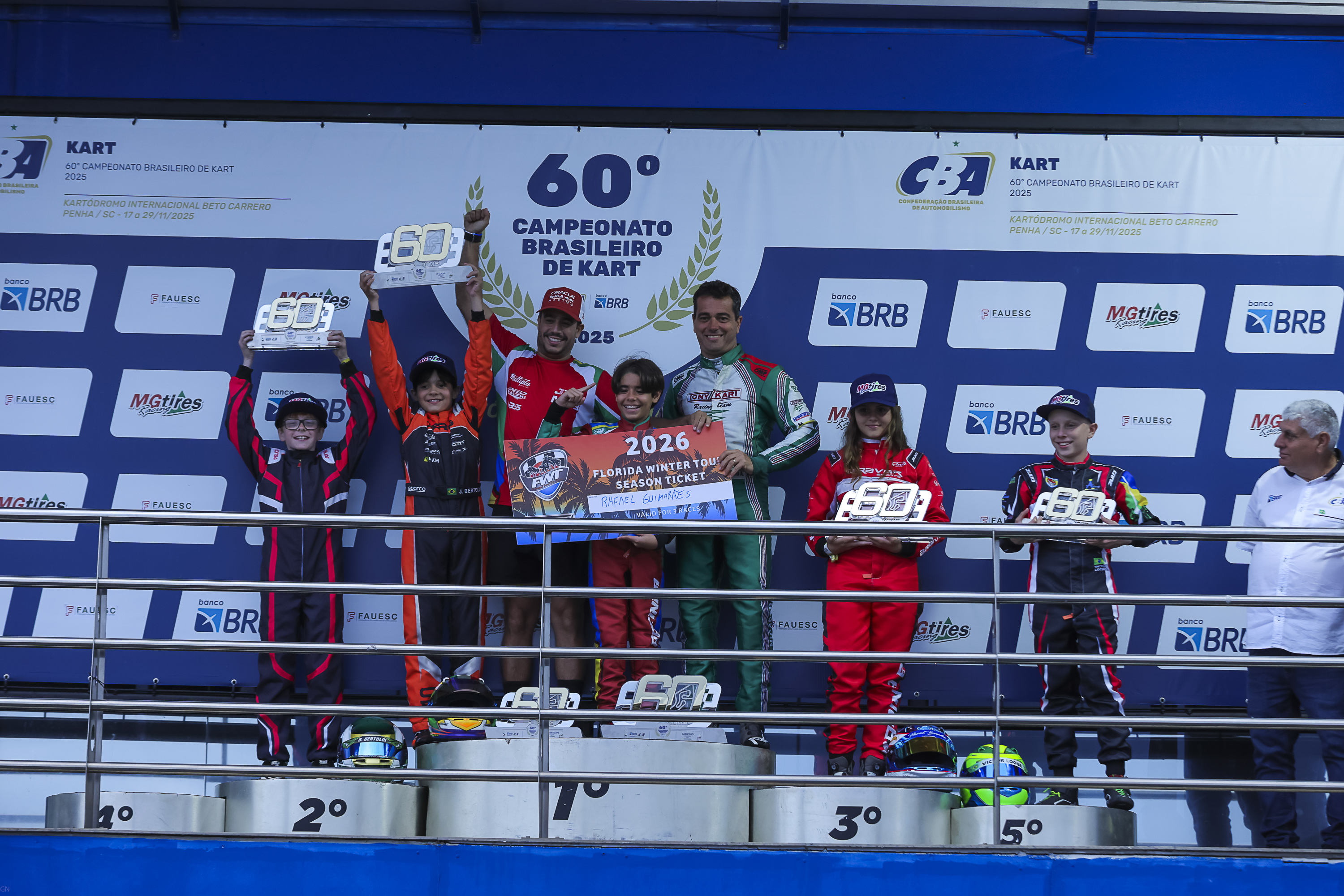 Com a vitória na Mini, Guimarães ainda conquistou um prêmio especial, fruto da parceira da CBA com a Tony Kart Brasil. O piloto ganhou a taxa de inscrição, o kit de pneus da prova e o combustível para a corrida na disputa de cada uma das três etapas da 28ª edição do Florida Winter Tour 2026, promovida pela ROK Cup nos Estados Unidos.