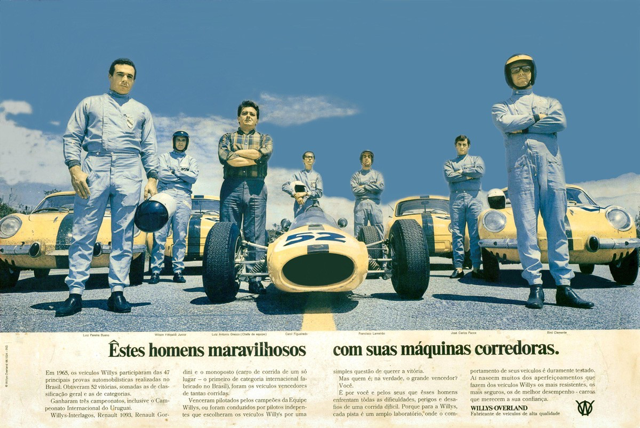 4: Luiz Antônio Greco e seus comandados na lendária equipe Willys (esq. para dir.): Luiz Pereira Bueno, Wilson Fittipaldi Jr., Greco, Carol Figueiredo, José Carlos Pace e Bird Clemente.
