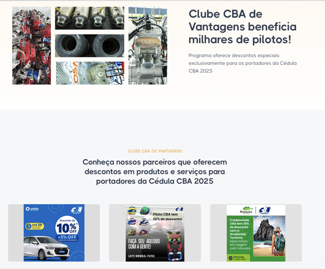 Criado por Roberto Pessoa Jr o Juca e conduzido pela comunicação reúne empresas e oferece benefícios integraisA Confederação Brasileira de Automobilismo avança posição com o Clube CBA de Vantagens (https://cba.org.br/clubevantagens/), criado para oferecer benefícios diretos aos portadores da Cédula CBA 2025.